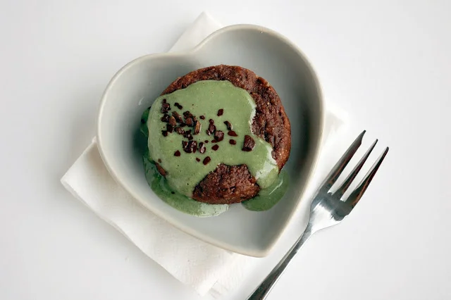 I thought I’d do my bit by going down the green themed route with a mint choc brownie. I still had some lovely thick cashew cream in the fridge so though it would work perfectly with my little single serve brownie… a drop (literally) of food colouring, plus a tiny bit of agave is all it took. If I’d had some spirulina (or other greens powder) I would definitely have given that a go for an alternative way of making ‘green’.
