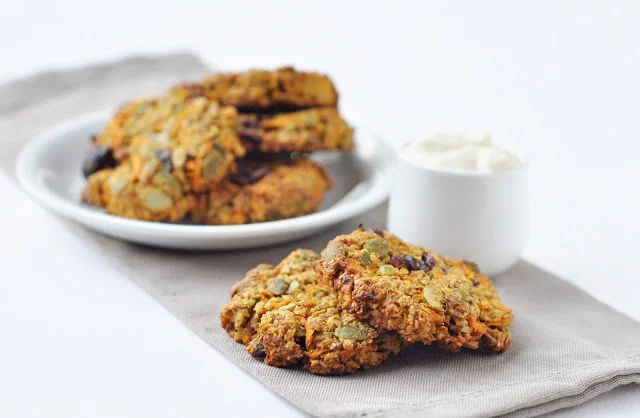 I went for a pumpkin seed and cranberry combo as I loved the contrast in colours against the carrot, also because I seem to have a bit of a thing for pumpkin seeds at the moment. Use whatever dried fruit and seeds or nuts you fancy..how about date and walnut...?